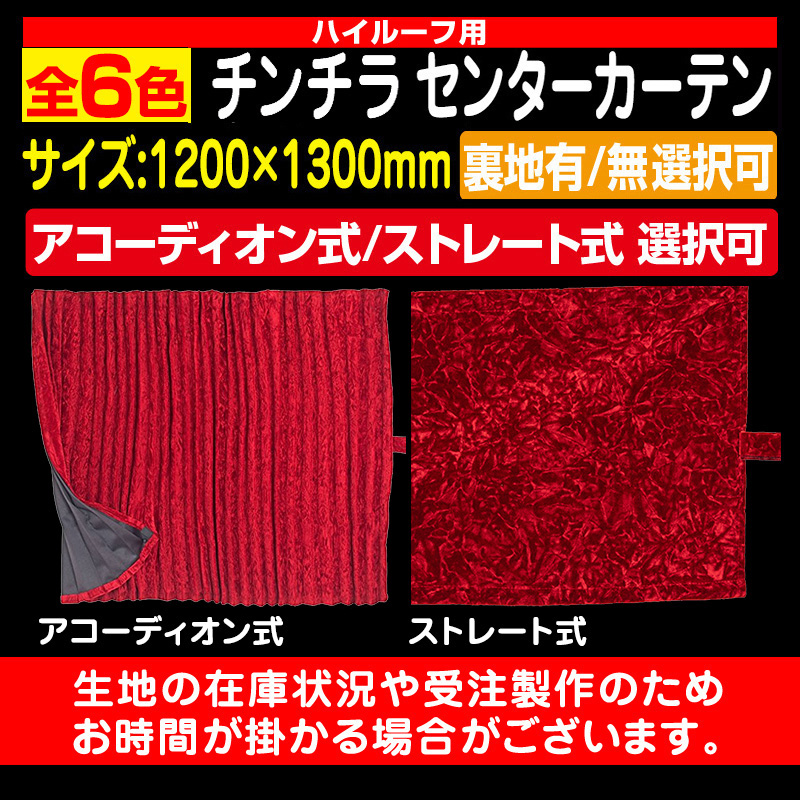 チンチラ センターカーテン(ハイルーフ/1300mm)[全6色]裏地有/無 選択可能 (受注製作品/代引き不可)【2枚1台分】