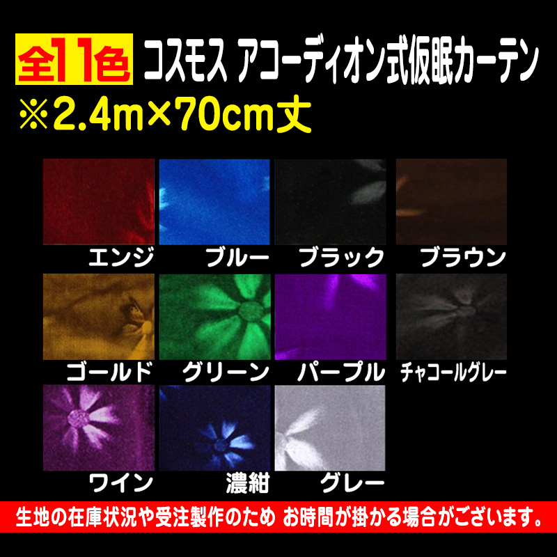 コスモス アコーディオン式仮眠カーテン 2.4m×70cm丈【片面】【2枚1台分】(受注製作品/代引き不可)
