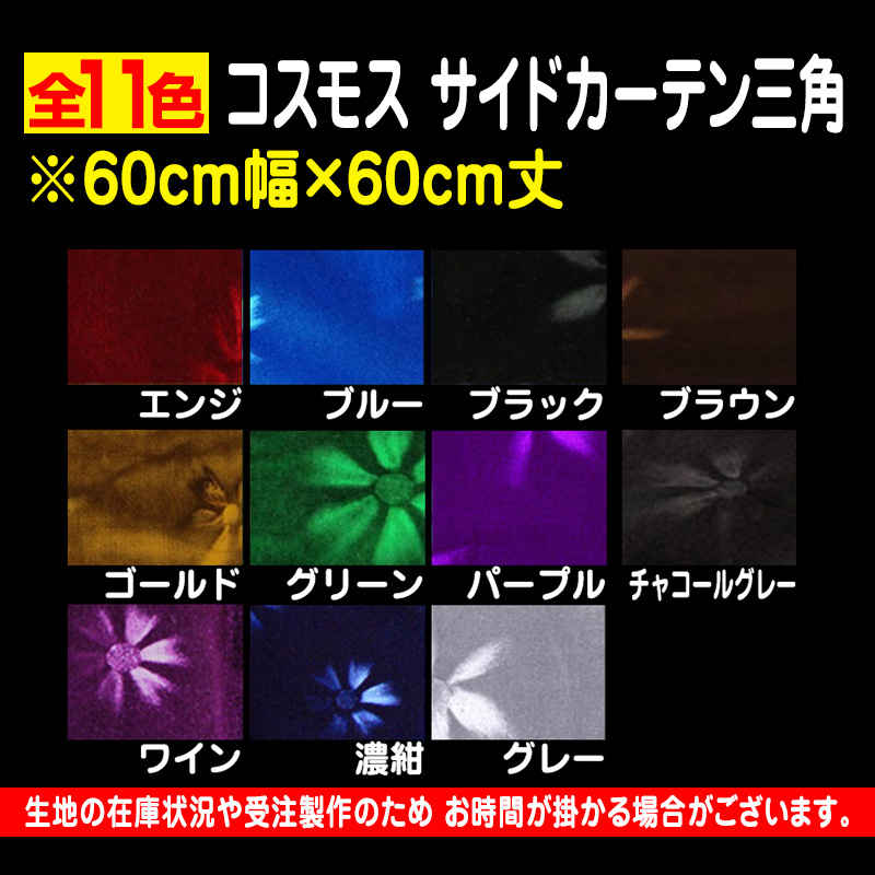 コスモス サイドカーテン三角 Mサイズ 60cm幅×60cm丈【両面】【2枚1台分】 (受注製作品/代引き不可)