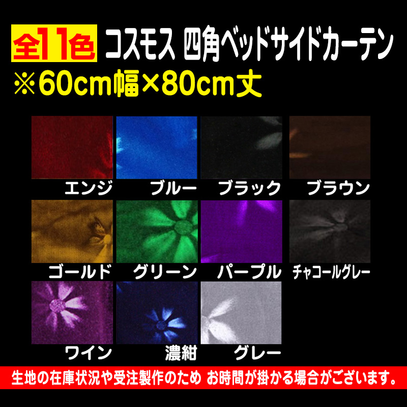 コスモス ベッドサイドカーテン60cm幅×80cm丈【両面/四角ストレート】【2枚1台分】(受注製作品/代引き不可)