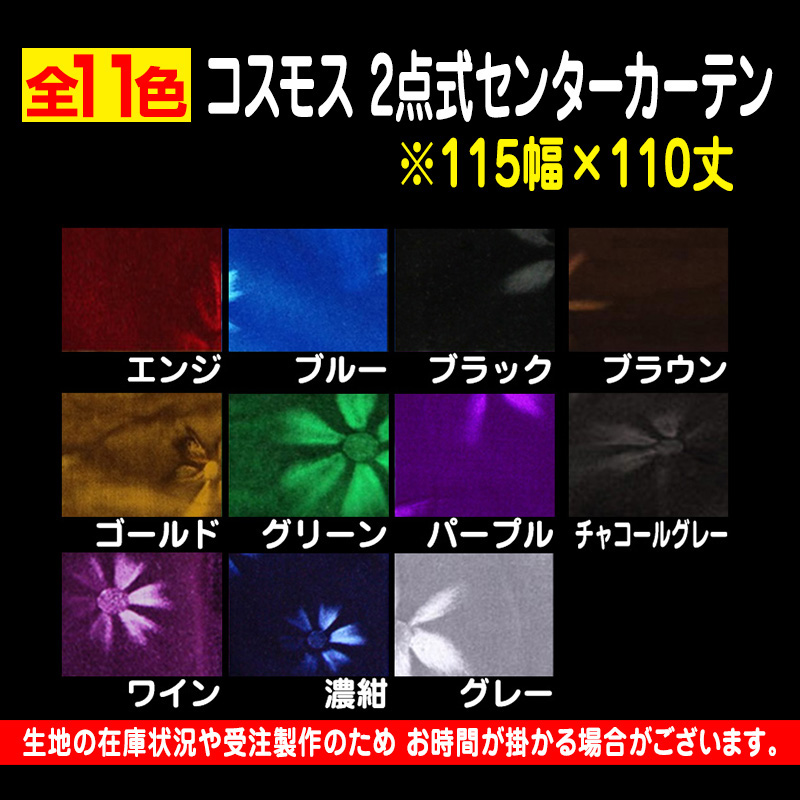 コスモス 2点式センターカーテン 115cm幅×110cm丈 L寸【片面/四角】【2枚1台分】(受注製作品/代引き不可)