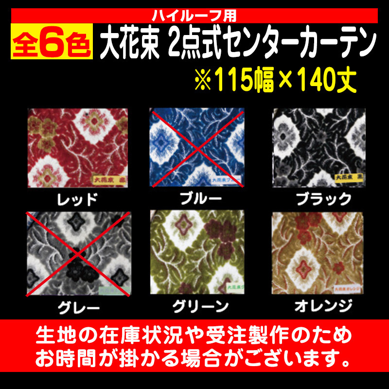 大花束 2点式センターカーテン 115cm幅×125cm丈 HL寸【片面/四角】【2枚1台分】(受注製作品/代引き不可)
