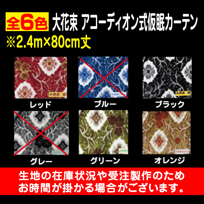 大花束 アコーディオン式仮眠カーテン 2.4m×70cm丈【片面】【2枚1台分】(受注製作品/代引き不可)