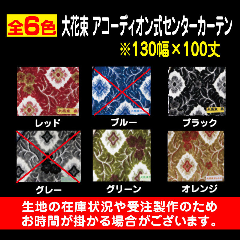 大花束センターカーテン 130cm幅×100cm丈【片面/アコーディオン】【2枚1台分】(受注製作品/代引き不可)