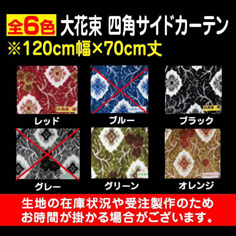 大花束 サイドカーテン120cm幅×70cm丈【片面/四角ストレート】【2枚1台分】 (受注製作品/代引き不可)