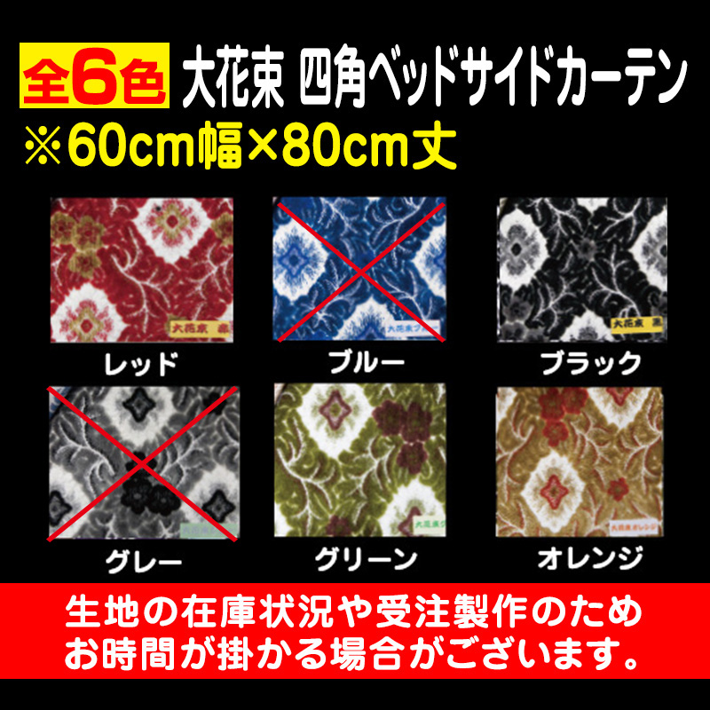 大花束ベッドサイドカーテン60cm幅×80cm丈【両面/四角ストレート】【2枚1台分】(受注製作品/代引き不可)
