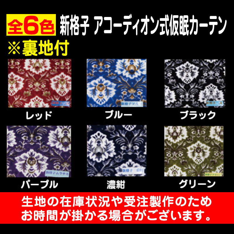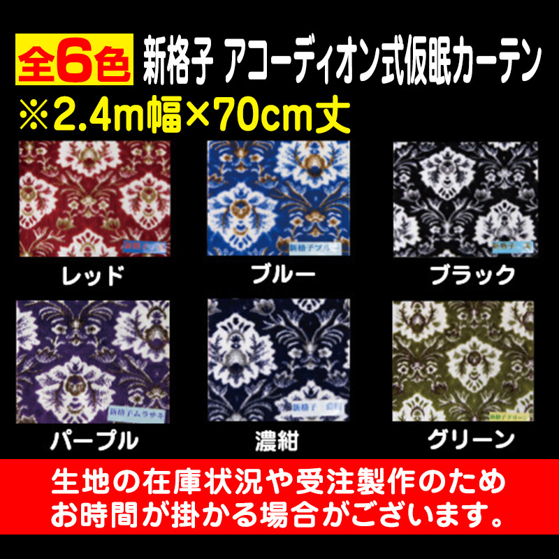 新格子 アコーディオン式仮眠カーテン 2.4m×70cm丈【片面】【2枚1台分】(受注製作品/代引き不可)
