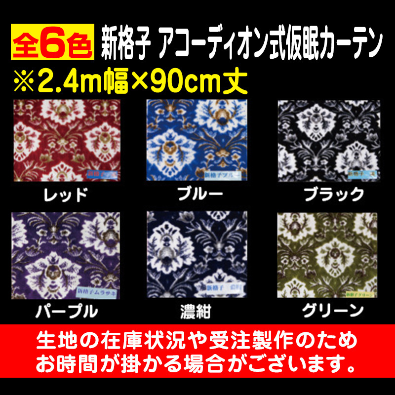 新格子 アコーディオン式仮眠カーテン 2.4m×90cm丈【片面】【2枚1台分】(受注製作品/代引き不可)