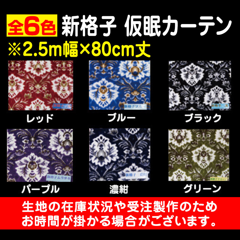 新格子 仮眠カーテン 2.5m幅×80cm丈【片面/四角ストレート】【2枚1台分】(受注製作品/代引き不可)