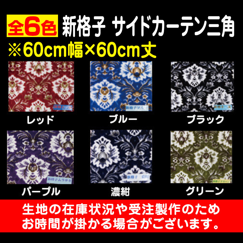 新格子 サイドカーテン三角 Mサイズ 60cm幅×60cm丈【両面】【2枚1台分】 (受注製作品/代引き不可)