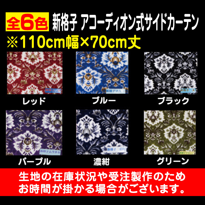 新格子 サイドカーテン 110cm幅×70cm丈【片面/アコーディオン】【2枚1台分】 (受注製作品/代引き不可)