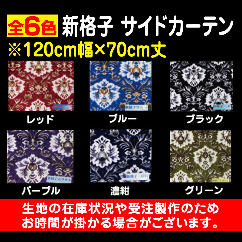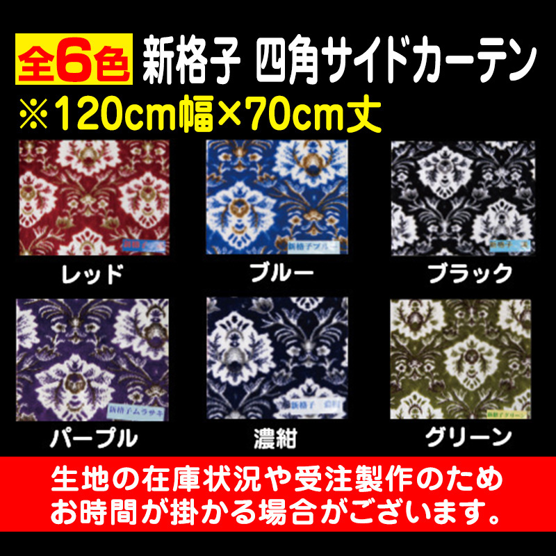 新格子 サイドカーテン120cm幅×70cm丈【片面/四角ストレート】【2枚1台分】 (受注製作品/代引き不可)