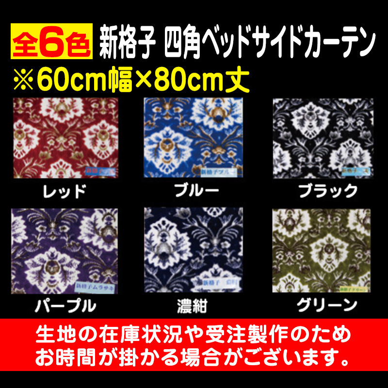 新格子ベッドサイドカーテン60cm幅×80cm丈【両面/四角ストレート】【2枚1台分】(受注製作品/代引き不可)