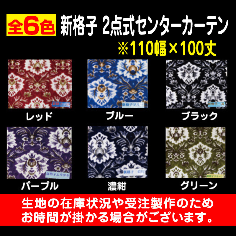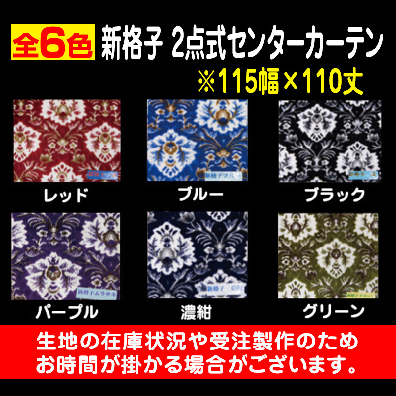 新格子 2点式センターカーテン 115cm幅×110cm丈 L寸【片面/四角】【2枚1台分】(受注製作品/代引き不可)