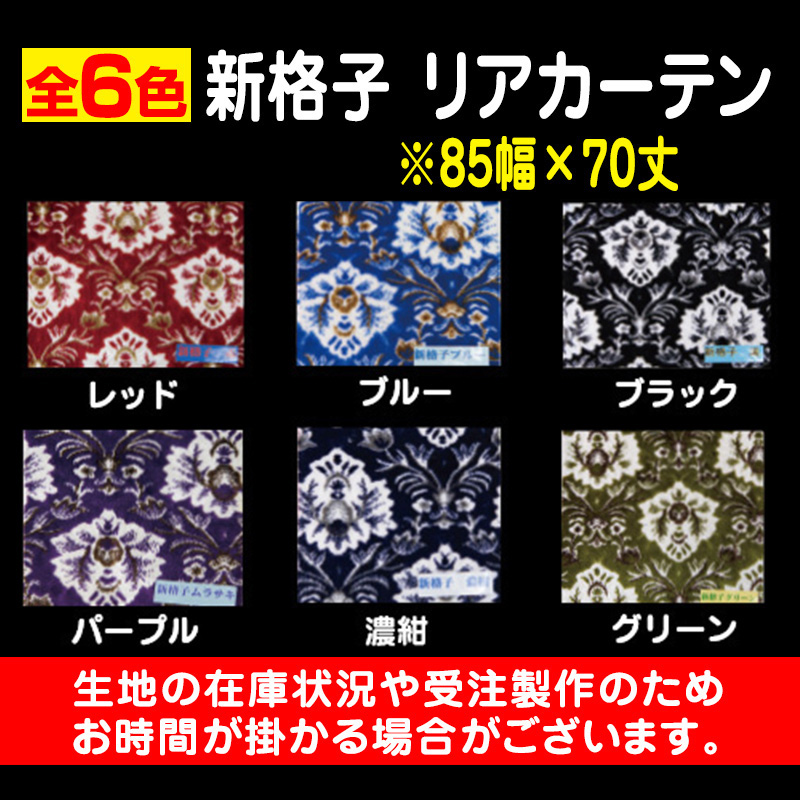 新格子 リアカーテン 85cm幅×70cm丈 【片面/四角】【2枚1台分】(受注製作品/代引き不可)