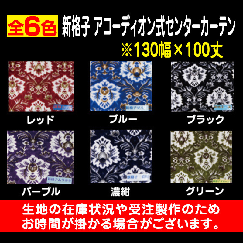 新格子 センターカーテン 130cm幅×100cm丈【片面/アコーディオン】【2枚1台分】(受注製作品/代引き不可)