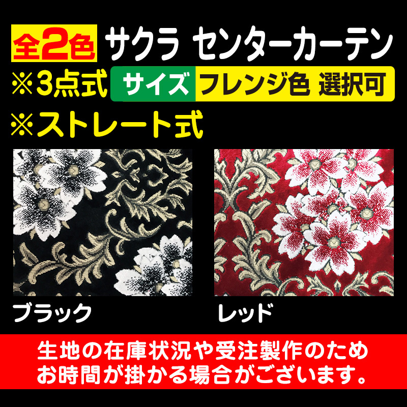 サクラ 3点式センターカーテン[全2色] サイズ/フレンジ色 選択可能 (受注製作品/代引き不可)【2枚1台分】