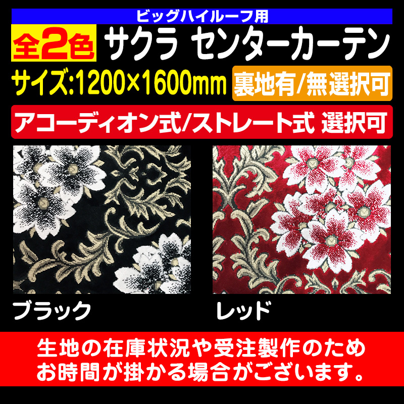 サクラ センターカーテン(ビッグハイルーフ/1600mm)[全2色]裏地有/無 選択可能 (受注製作品/代引き不可)【2枚1台分】