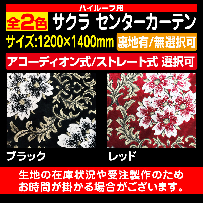サクラ センターカーテン(ハイルーフ/1400mm)[全2色]裏地有/無 選択可能 (受注製作品/代引き不可)【2枚1台分】