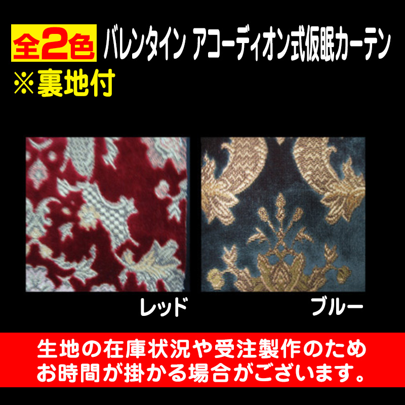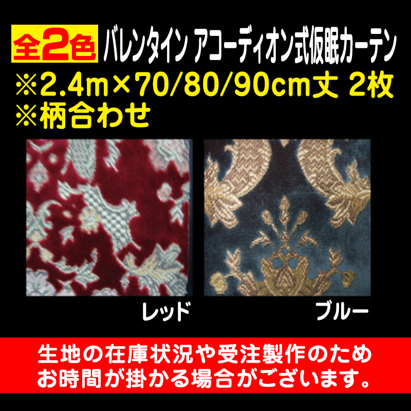 バレンタイン アコーディオン式仮眠カーテン【裏地付】【2枚1台分】 2.4m×70/80/90cm丈 2枚(受注製作品/代引き不可)
