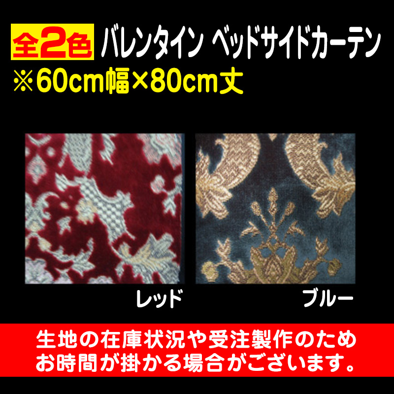 バレンタイン ベッドサイドカーテン60cm幅×80cm丈【両面/四角ストレート】【2枚1台分】(受注製作品/代引き不可)