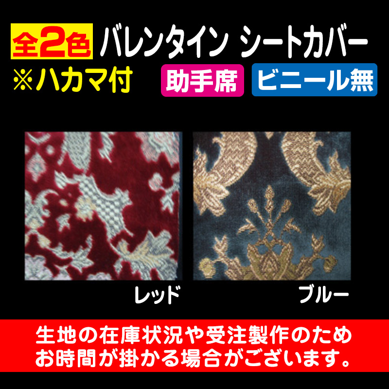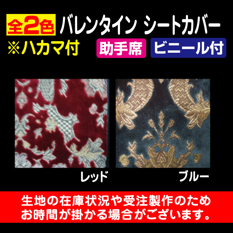 バレンタイン 専用シートカバー 【ハカマ付き】【ビニールなし】 2席運転席/助手席セット【4t/大型】(受注製作品/代引き不可)