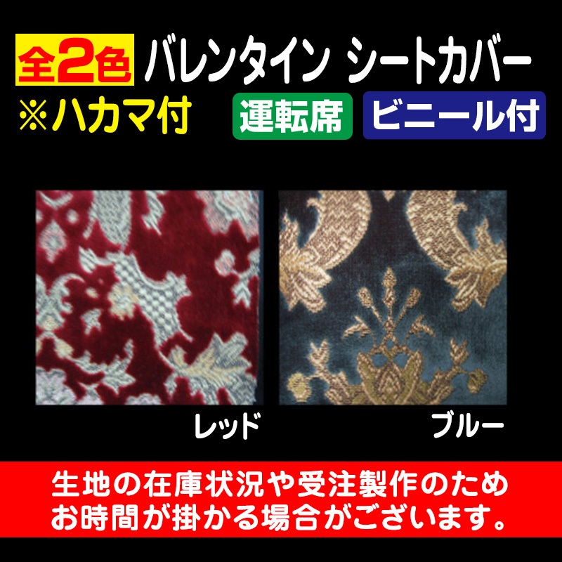 バレンタイン 専用シートカバー 【ハカマ付き】【ビニール付】 2席運転席/助手席セット【4t/大型】(受注製作品/代引き不可)