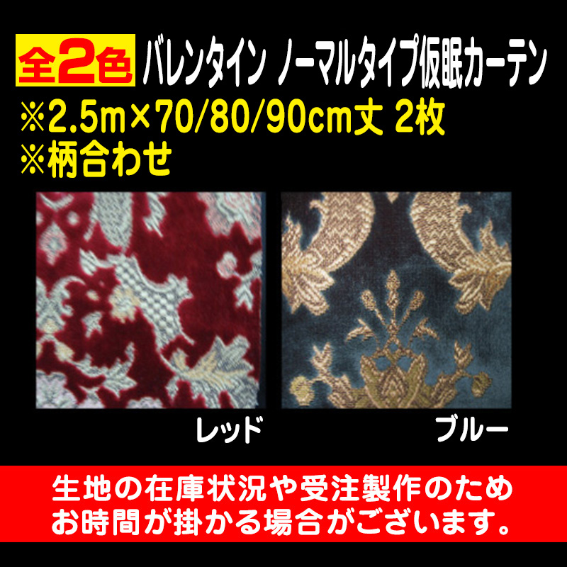 バレンタイン 仮眠カーテン 2.5m幅×80cm丈【片面/四角ストレート】【2枚1台分】(受注製作品/代引き不可)