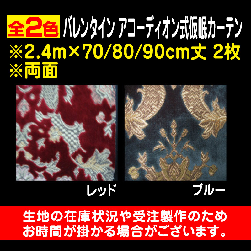 バレンタイン アコーディオン式仮眠カーテン【両面】【2枚1台分】 2.4m×70/80/90cm丈 2枚(受注製作品/代引き不可)