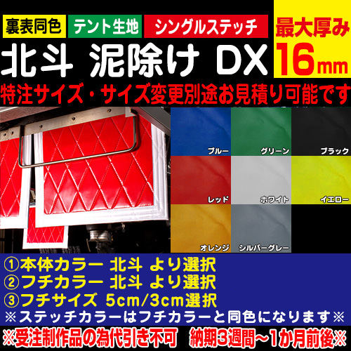 【現在納期1~1.5ヶ月】キルト泥除け[16mm] 北斗 3分割泥除けヨコ※4tワイド高さ500mm(横500mm+1150mm+500mm)/カラー/フチカラーサイズ選択(受注制作品代引き不可)3枚セット価格