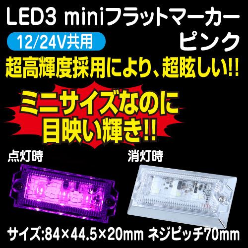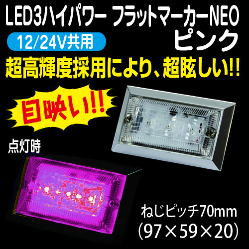 LED3ハイパワー ミニフラットマーカーNEO 12/24V共用(ピンク)