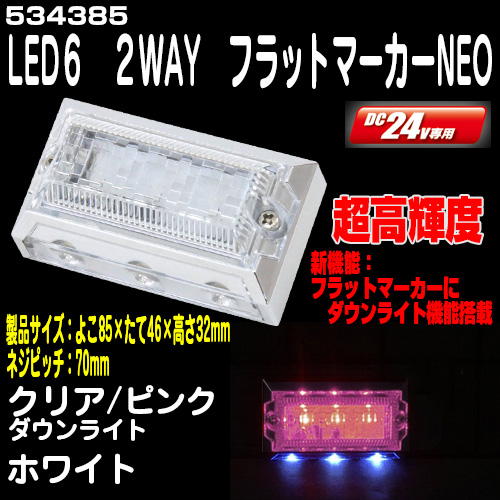 LED6 2WAYフラットマーカーNEO 24V用(クリア/ピンク※ダウンライトホワイト)