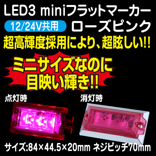 LED3ハイパワー ミニフラットマーカーNEO 12/24V共用(ローズピンク)