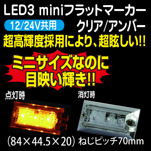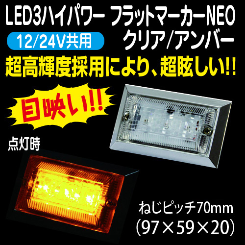 LED3ハイパワー ミニフラットマーカーNEO 12/24V共用(クリア/アンバー)