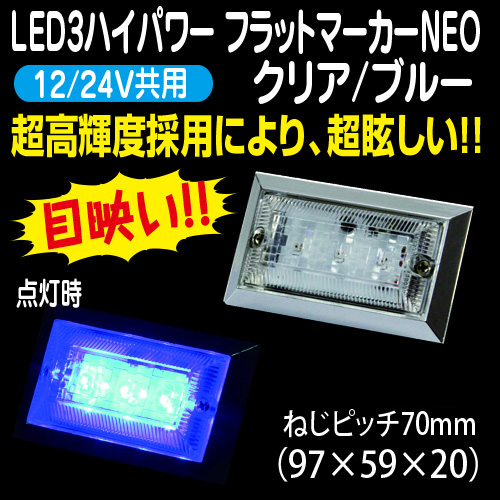 LED3ハイパワーフラットマーカーNEO 12/24V共用(クリア/ブルー)