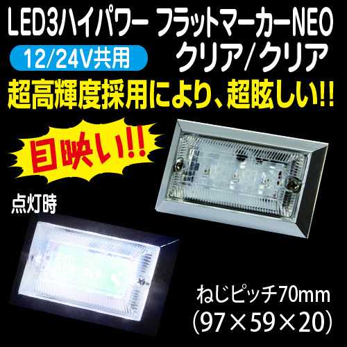 LED3ハイパワーフラットマーカーNEO 12/24V共用(クリア/クリア)