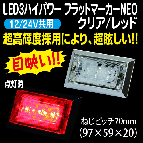 LED3ハイパワーフラットマーカーNEO 12/24V共用(クリア/レッド)