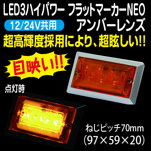 LED3ハイパワーフラットマーカーNEO 12/24V共用(アンバー/アンバー)