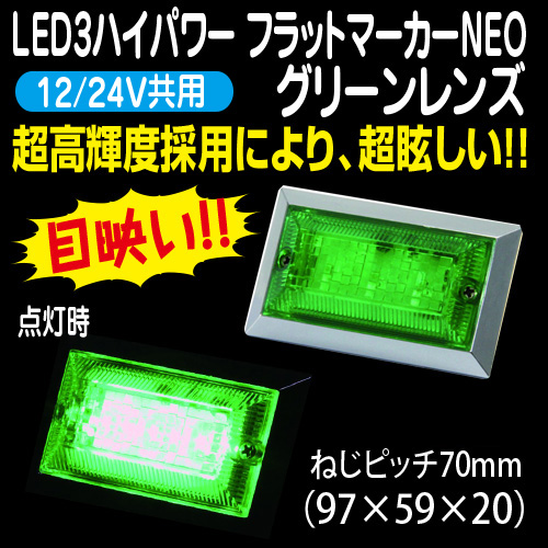 LED3ハイパワーフラットマーカーNEO 12/24V共用(グリーン/グリーン)