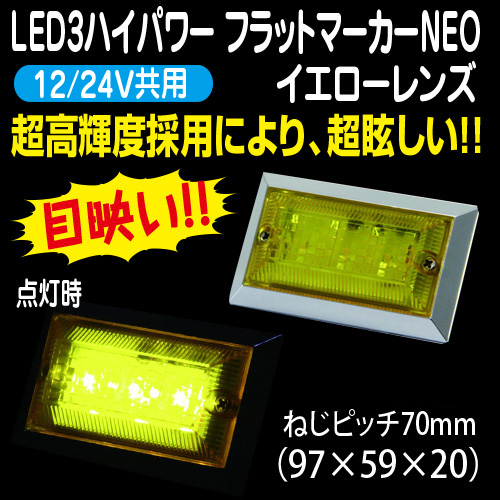 LED3ハイパワーフラットマーカーNEO 12/24V共用(イエロー/イエロー)