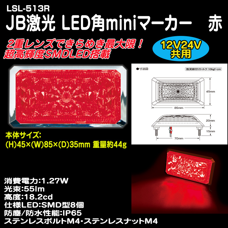 JB激光 LED角miniマーカー 赤 12/24V共用【 LSL513R】