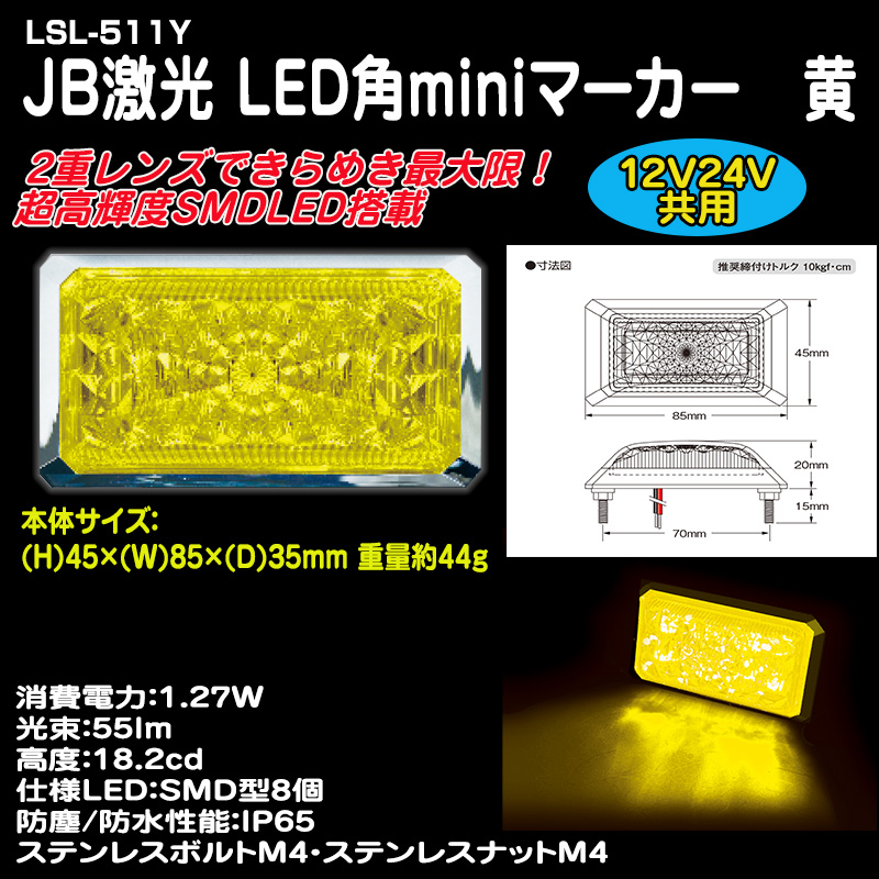 JB激光 LED角miniマーカー 黄 12/24V共用【 LSL511Y】