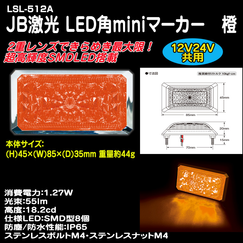 JB激光 LED角miniマーカー 橙 12/24V共用【 LSL512A】