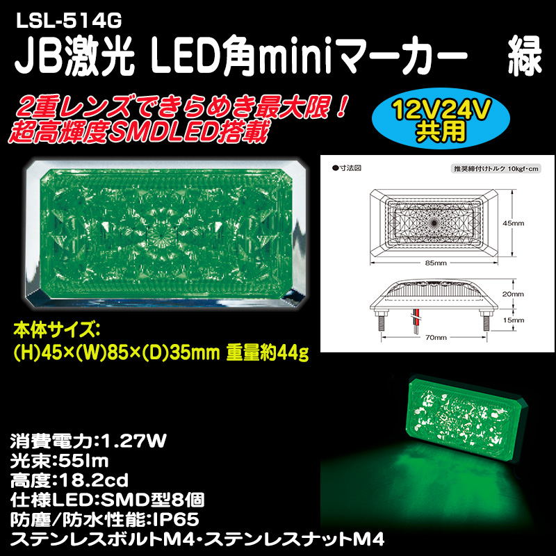 JB激光 LED角miniマーカー 緑 12/24V共用【 LSL514G】