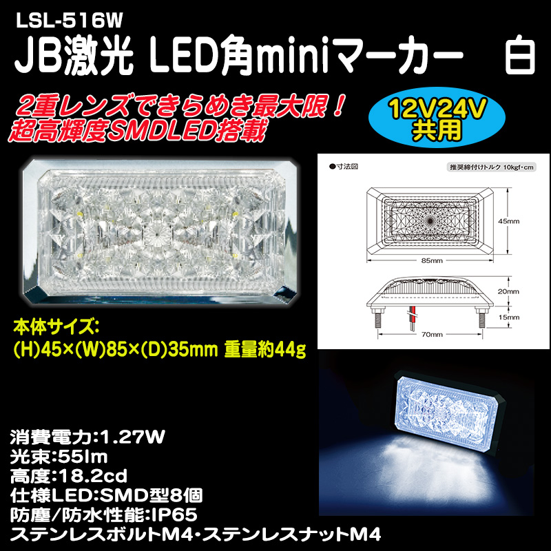 JB激光 LED角miniマーカー 白 12/24V共用【 LSL516W】