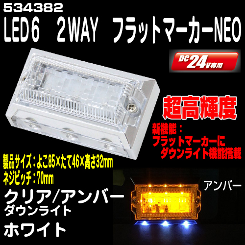 LED6 2WAYフラットマーカーNEO 24V用(クリア/アンバー※ダウンライトホワイト)