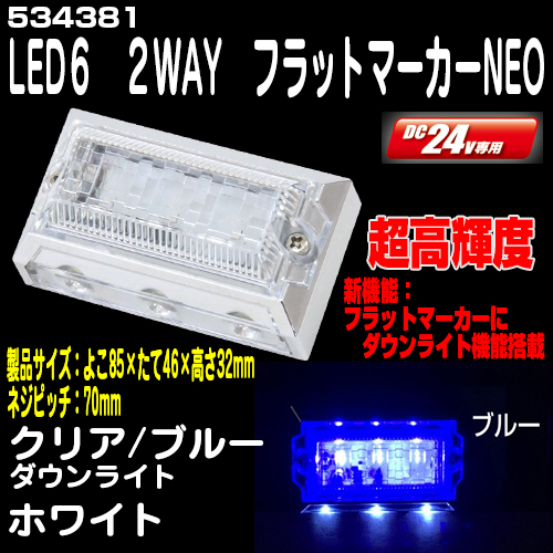 LED6 2WAYフラットマーカーNEO 24V用(クリア/ブルー※ダウンライトホワイト)