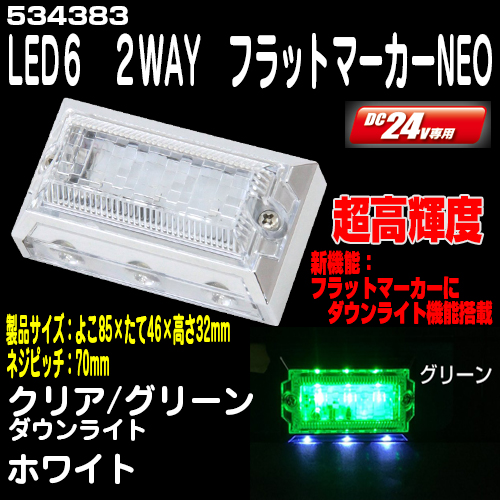 LED6 2WAYフラットマーカーNEO 24V用(クリア/グリーン※ダウンライトホワイト)
