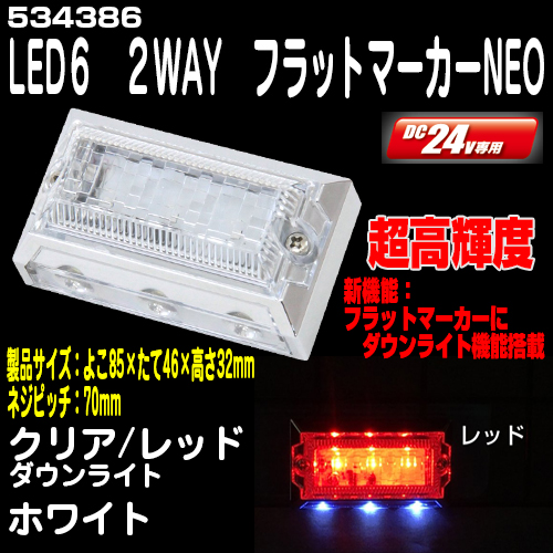 [1個でも爆安!(¥2,550→¥2,300)]LED6 2WAYフラットマーカーNEO 24V用(クリア/レッド※ダウンライトホワイト)