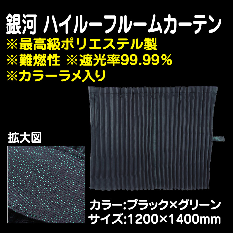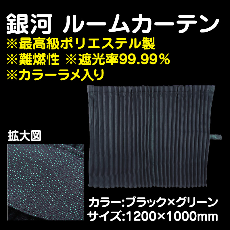 ラメ入り銀河アコーディオン式ハイルーフルーム(センター)カーテン ブラック×グリーン ※ハイルーフセンター 1200×1400mm(一級遮光・難燃製) 【2枚1台分】